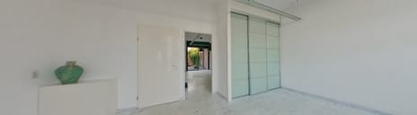 Vanuit de hal bereikt u het gastentoilet met fonteintje, evenals de tweede hal aan de zij-ingang. Deze biedt toegang tot de trapopgang, meterkast en eveneens via een schuifpui tot de tuin.
