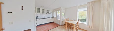 beschikt u over een 4-pits gasfornuis en een afzuigkap. Naast de keuken bevindt zich een deur die u toegang geeft tot het terras.