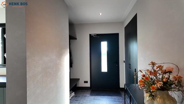 Via de entree kom je in de hal, die toegang geeft tot de moderne woonkeuken, de trap naar de 1e verdieping, de woonkamer, een moderne toiletruimte met wandcloset, een slaapkamer en de badkamer. De hal is strak afgewerkt en dankzij de keurige kastenwanden zijn de cv-installatie en de aansluitingen voor de wasmachine en droger netjes weggewerkt. De ruime woonkeuken is modern en beschikt over een U-vormige opstelling met een schiereiland, ideaal om aan te koken op de inductiekookplaat met geïntegreerde afzuiging. Daarnaast is de keuken uitgerust met diverse inbouwapparatuur, waaronder een inbouwkoffiezetapparaat, koelkast, combi-oven en afwasmachine. Dankzij de royale opzet is er ruim plaats voor een eethoek, waarbij de houtkachel extra sfeer en warmte toevoegt. Bovendien is er een praktische kelderkast aanwezig, en via een deur aan de achterzijde van de keuken is zowel een inloopkast als een slaapkamer bereikbaar.