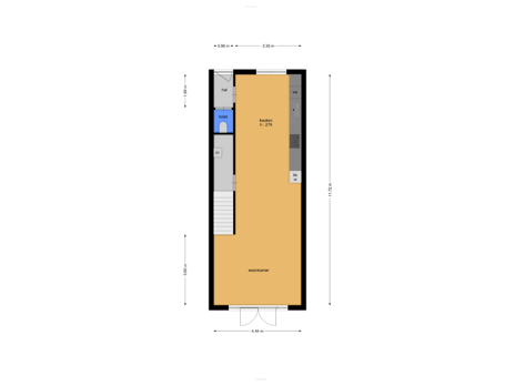 De woning stappen we binnen middels de voordeur, welkom! In de hal treft u een toiletruimte met toilet. Vanuit de hal krijgt u toegang tot de keuken.