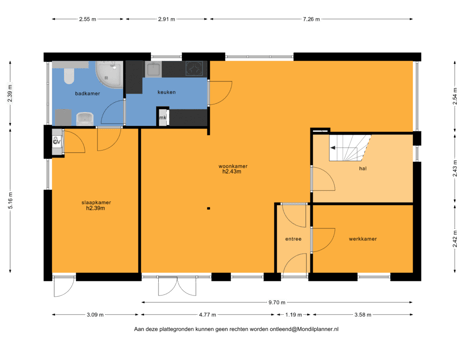 Entree met hal en toegang tot de werkkamer en woonkamer. De lichte woonkamer heeft openslaande deuren naar de tuin. De moderne keuken (2022) is praktisch ingedeeld en voorzien van diverse inbouwapparatuur. Verder vindt u hier een ruime slaapkamer en een badkamer met douche, wastafel, toilet en aansluiting voor de wasmachine en droger. Een extra hal met bergruimte geeft toegang tot de trap naar boven.