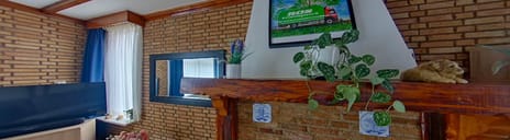 De gezellige L-vormige woonkamer is afgewerkt met een laminaatvloer, beschikt over twee inbouwkasten, een schouw en heeft een karakteristiek balkenplafond en wanden met schoonmetselwerk en granol.