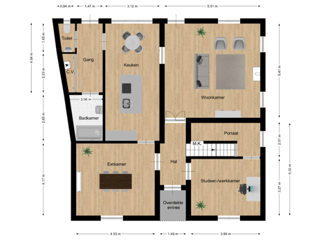 - De indeling biedt volop mogelijkheden, zowel als privé woning maar ook om werken en wonen te combineren;