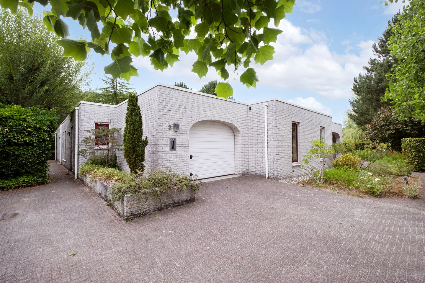 Overdekte entree in ruime hal met toilet en meterkast. De hal biedt enerzijds toegang tot een ruime slaapkamer (ca. 26 m²), met ingebouwde kast en eigen badkamer. Deze badkamer is voorzien van een douche en wastafelmeubel. De slaapkamer is zeer geschikt als werkkamer of voor het creëeren van een praktijkruimte of kantoor aan huis. Aan de andere zijde van de hal toegang tot de royale en lichte woonkamer (ca. 47 m²). De ruim opgezette keuken (ca. 15 m²) is voorzien van een inductie kookplaat, rvs afzuigkap, combi-oven/magnetron, vaatwasser, koel-vriescombinatie en volop bergruimte. Naast de keuken is de eet/tuinkamer (ca. 18 m²), welke nu is ingericht als leesruimte, met een open verbinding tot de woonkamer en een schuifpui voor rechtstreekse toegang tot de achtertuin. De achterste hal biedt toegang tot de overige twee slaapkamers (ca. 21 m² en 14 m²), waarvan een met vaste kast en toegang tot de tweede badkamer met toilet, douche, ligbad en wastafelmeubel. De bijkeuken (ca. 7 m²) is voorzien van een aansluiting voor het witgoed, alsmede een vaste kastenwand. Van binnenuit toegang tot de inpandige garage (ca. 37 m²). De patio vormt het hart van de bungalow en is vanaf meerdere ruimtes (o.a. woonkamer, slaapkamer en garage) bereikbaar.