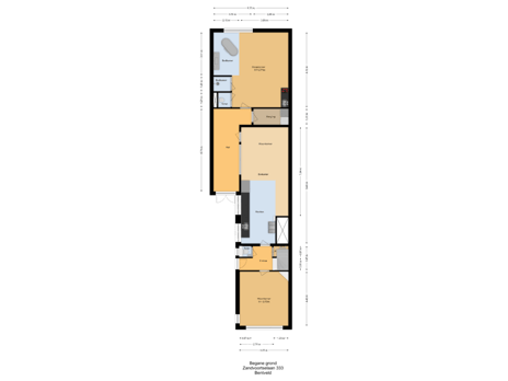 Parterre: entree, hal met modern zwevend toilet en trap naar ruime kelder met stahoogte en goede opslagmogelijkheden, lichte zit-/tvkamer, woonkamer met luxe open keuken voorzien van diverse inbouwapparatuur en elektrische haard, royale hal met extra entree, berging met wasmachine-/droger aansluiting en toegang naar studio voorzien van ligbad, inloopdouche, zwevend toilet, wastafelmeubel en kitchenette, via hal trap naar...
