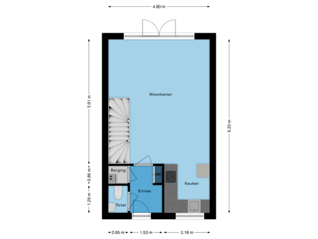 Je komt binnen in de hal/entree. Hier bevindt zich de moderne meterkast (voorzien van 8 groepen, een fornuisgroep, 3 aardlekschakelaars en glasvezelaansluiting). De toiletruimte is half betegeld en voorzien van een closet, fonteintje en mechanische ventilatie. Daarnaast vind je in de hal een praktische bergkast met de opstelling van de C.V.-ketel (Intergas, 2015) en de verdeler van de vloerverwarming.