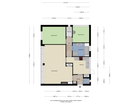 Deze informatie is door ons met de nodige zorgvuldigheid samengesteld. Onzerzijds wordt echter geen enkele aansprakelijkheid aanvaard voor enige onvolledigheid, onjuistheid of anderszins, dan wel de gevolgen daarvan. Alle opgegeven maten en oppervlakten zijn indicatief. Aan onvolkomenheden in de tekst kunnen geen rechten worden ontleend.