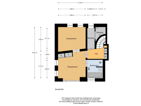 Een sierlijke trap verbindt de begane grond met het souterrain, onder het linkerdeel van de villa. Hier zijn een praktische berging, twee (slaap)kamers en een badkamer. De kamer aan de voorzijde, momenteel in gebruik als berging, heeft een eigen entree en een vaste kastenwand. In de badkamer op deze verdieping heeft u de beschikking over een ligbad, inloopdouche, toilet en een wastafel.