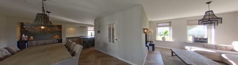 Begane grond: Hal/entree met de trapopgang. De lichte woonkamer heeft grote ramen waardoor je altijd rondom zicht hebt. Via fraaie schuifdeuren heeft u toegang tot de aparte TV kamer, welke is voorzien van openslaande deuren waardoor je zo de zonnige tuin instapt. De schitterende woonkeuken vormt het hart van de woning, waar je lekker kookt en borrelt met je vrienden en familie. Deze luxe keuken beschikt over diverse inbouwapparatuur te weten: 2x wijnklimaatkast, 5-pits gasfornuis met grote oven, Quooker, Miele combi stoomoven, 2 koelkasten, vriezer en een vaatwasser. Het geheel is afgewerkt met een fraaie PVC vloer met vloerverwarming. In de aangrenzende aanbouw is een praktische bijkeuken gerealiseerd en een modern toilet met apart urinoir. De master bedroom op de begane grond heeft een badkamer ensuite welke is voorzien van een wandcloset, wastafelmeubel en een comfortabele en zeer ruime inloopdouche.