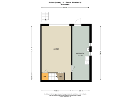 Het souterrain bereik je vanuit de overloop op de begane grond. Van hieruit stap je direct de enorme inpandige garage in. Direct hieraan grenst de waskamer met uitstort gootsteen. Gezamenlijk ca. 46 M2 multifunctionele ruime voor hobby, opslag, werk of verblijf.