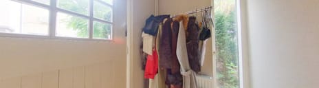 Via de voortuin bereik je de entree van de woning. In de ruime en lichte hal vind je naast de meterkast voldoende ruimte voor een goede garderobe.