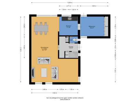 De open keuken (7 m²) sluit naadloos aan op de woonkamer. Aansluitend vind je de praktische bijkeuken van 10 m² met vaste kasten - een ideale plek voor extra opslag, wasmachine en droger.