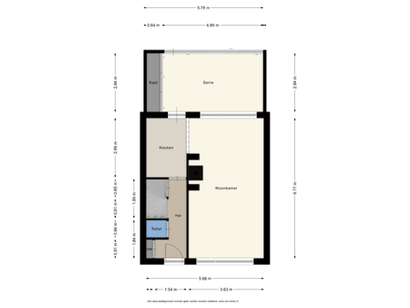 Via de hal/entree betreedt u de woning. Hier bevinden zich de meterkast, een nette toiletruimte, de trapopgang naar de eerste verdieping, een trapkast met veel opbergruimte en de doorgang naar de keuken.