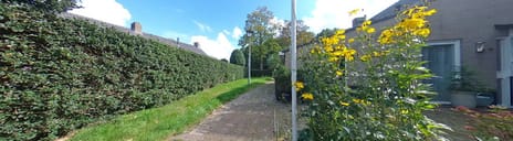Tuin: zonnige en vrije tuin gelegen op het Zuiden met veranda, achterom en verschillende terrassen. Ook de voortuin geeft een leuk en gezellig binnenkomen en hierin tref je de vroege ochtendzon.