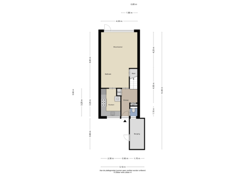 De woning is conform de Branchebrede Meetinstructie (BBMI) opgemeten. De Meetinstructie is bedoeld om een meer eenduidige manier van meten toe te passen voor het geven van een indicatie van de gebruiksoppervlakte. De Meetinstructie sluit verschillen in meetuitkomsten niet volledig uit, door bijvoorbeeld interpretatieverschillen, afrondingen of beperkingen bij het uitvoeren van de meting.
