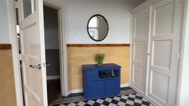 De auto parkeer je met gemak in de voor- of zijtuin. Bij binnenkomst via de voorzijde van de woning kom je in het tochtportaal (2.87 x 2.75) met meterkast. Ideaal voor een grote garderobe of schoenenkast. De navolgende gang geeft je toegang tot de living, keuken en het toilet. De lichte doorzonwoonkamer (4.49 x 7.80) is heerlijk ruim en voorzien van een houten afwerkvloer en dubbele deuren naar het balkon aan de achterzijde van de woning. Zo wel hier als in het tochtportaal vind je glas-in-lood ramen. De gesloten keuken (3.80 x 3.44) is heerlijk ruim, maar wel aan vervanging toe. Vanaf hier kun je met een enkele deur ook het balkon op. Het balkon aan de achterzijde (9.02 x 4.22) is op het westen gelegen en geeft je een fijn ruimtelijk gevoel. Met mooi weer kun je hier perfect relaxen of dineren aan een grote tafel. Vanuit de keuken kun je de trap pakken naar de kelder en naar de eerste verdieping.