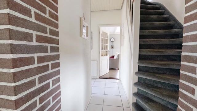 Gang: De gang biedt toegang tot de badruimte met lavet en een aparte wasruimte met Cv-ketel en extra opslagruimte. Een praktische doorgang die alle ruimtes met elkaar verbindt.