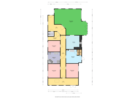 entree/hal – toilet - woonkamer(48m²) voorzien van houtkachel en openslaande tuindeuren – halfopen keuken(15,3m²) voorzien van inbouwkeuken voorzien van kookplaat, afzuigkapschouw, vaatwasser (lekt), combimagnetron en koelkast – hal - garderobe - slaapkamer(9,5m²) – bijkeuken(12,8m²) met witgoedaansluiting, kastruimte, keukenblok en achterom - badkamer(9,9m²) voorzien van dubbele wasbakmeubel, ligbad, inloopdouche en toilet – slaapkamer(12,1m²) - slaapkamer(12,4m²) – hal met achterom(15,1m²)