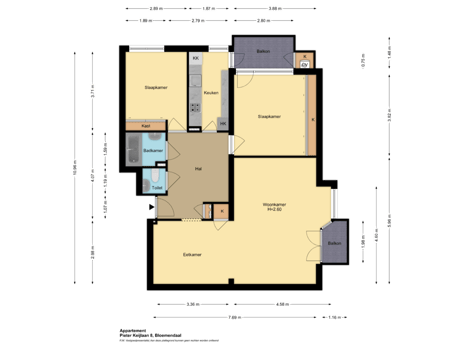Het appartement heeft 2 balkons waarvan 1 op het zuiden en 1 op het oosten.