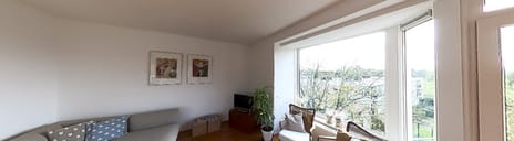 Op de bovenste etage gelegen, bijzonder sfeervol en licht 3-kamer hoekappartement. Met veel ramen, een balkon op het zuiden én oosten, en een fantastisch uitzicht over de landerijen richting de dorpskern van Bloemendaal en het omliggende groen.