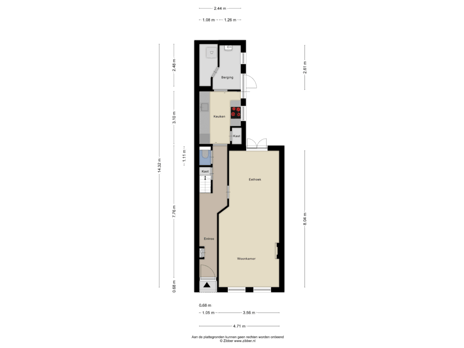 - 66 m² (14.00 metre deep and 4.70 metre wide)