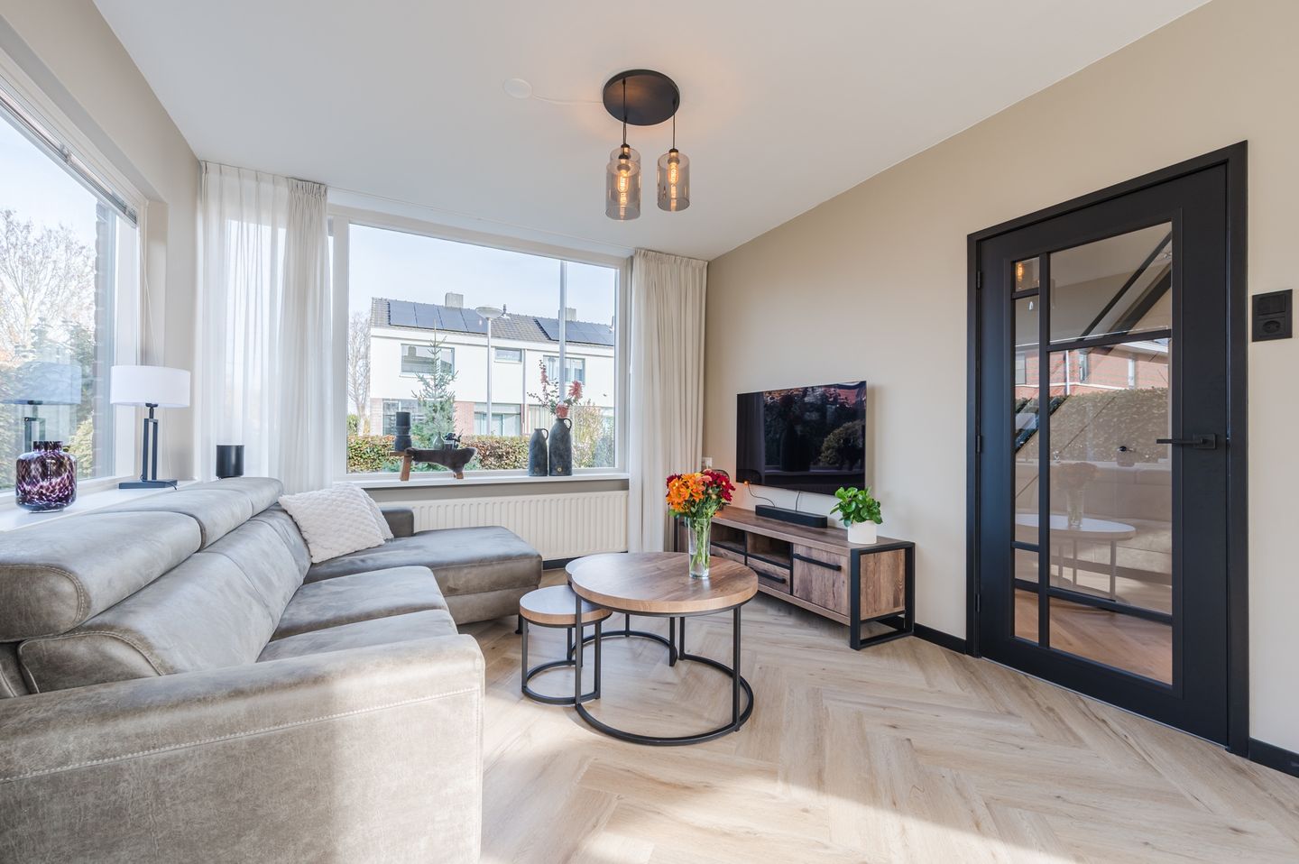 Stap deze hoekwoning binnen en laat je verrassen door de lichte, sfeervolle woonkamer met prachtige PVC-vloer en strakke zwarte binnendeur – hier wil je meteen neerploffen met een goed boek of vrienden uitnodigen voor een gezellige avond. De open keuken versterkt het lichte, ruimtelijke karakter van de woonkamer en maakt het koken extra gezellig.