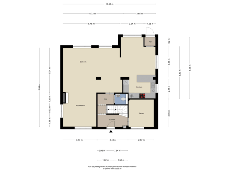 De woonkamer staat in open verbinding met de keuken en hebben samen een oppervlakte van ruim 70m2. Dus naast de zithoek en de keukenopstelling is er veel ruimte om invulling te geven aan deze kamer, zoals een extra eethoek, speelgedeelte of leeshoek. Laat je fantasie de vrije loop.