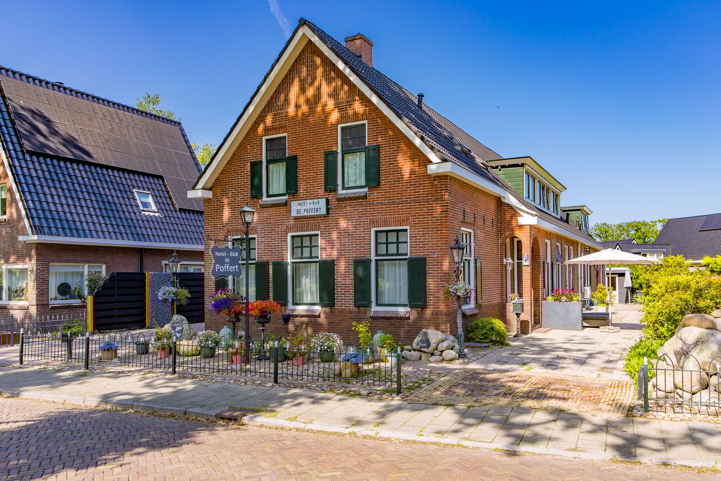 Of u nu de bestaande B&B wilt voortzetten, op zoek bent naar een dubbele woning voor familieleden of juist royaal en vrij wilt wonen met ruimte om te werken aan huis: de mogelijkheden zijn legio. Dankzij het karakteristieke hoofdgebouw uit 1927, aangevuld met een uitbreiding uit 1993, ademt deze plek sfeer én comfort.