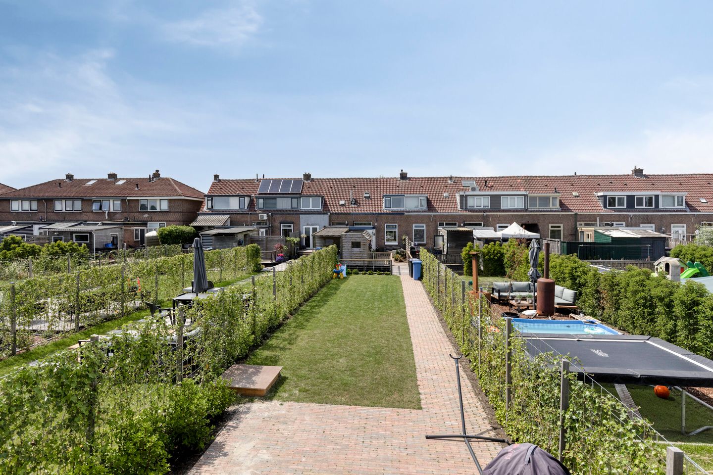 De achtertuin grenst direct aan het water en biedt een vrij uitzicht over de omliggende kwekerijen – een unieke en groene ligging. Dankzij de deels betegelde ondergrond is er voldoende ruimte voor een eettafel, zodat je ook buiten van een maaltijd kunt genieten. De tuin beschikt bovendien over een houten berging én een extra stenen berging die aan de woning vastzit. Aan opbergruimte dus geen gebrek. Aan de voorzijde van de woning is er volop parkeergelegenheid.