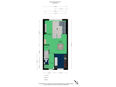 - 49 m² (8.80 metre deep and 5.52 metre wide)