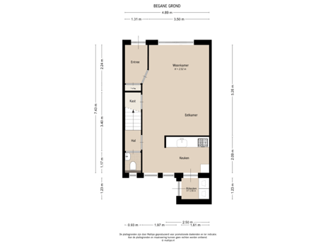 - 43 m² (8.50 metre deep and 5.00 metre wide)