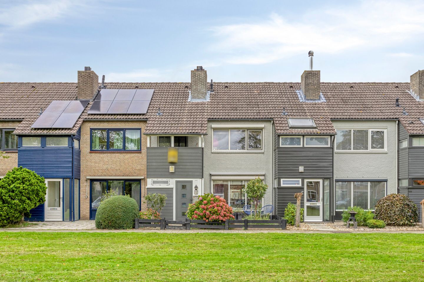 Bij aankomst heb je de voortuin al gezien, met een lage perenboom en een grote hortensia. Het terras in de voortuin is op het westen, perfect om in de middag- en avondzon te zitten. Er komt geen verkeer langs, en het plantsoen is een fijne speelplek voor de kinderen.