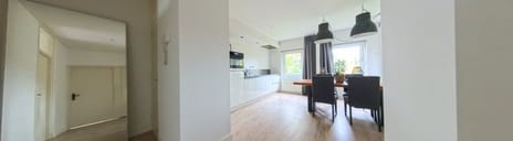 Ruime hal/entree met directe doorloop naar de leefkeuken. Vanuit de hal is tevens toegang tot het toilet, één slaapkamer en de woonkamer.