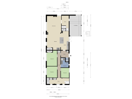 Via de lange hal zijn de volgende ruimten toegankelijk: