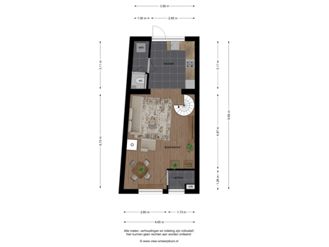 - Deze informatie is door ons met de nodige zorgvuldigheid samengesteld. Onzerzijds wordt echter geen enkele aansprakelijkheid aanvaard voor enige onvolledigheid, onjuistheid of anderszins, dan wel de gevolgen daarvan. Alle opgegeven maten en oppervlakten zijn indicatief.