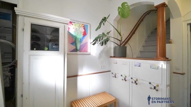 Gang met garderobe, trap naar verdieping I en waarop uitkomen: