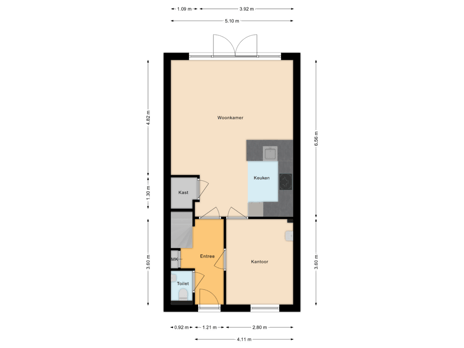 Aan de voorzijde bevindt zich een multifunctionele ruimte, bereikbaar vanuit zowel de hal als de keuken. Deze ruimte wordt momenteel gebruikt als behandelpraktijk, maar is uiteraard geschikt voor diverse ander doeleinden zoals een thuiswerkplek of een speelkamer. Indien gewenst kan de indeling worden aangepast, bijvoorbeeld door de keuken naar de voorzijde van de woning te verplaatsen en zo een royale living te creëren.