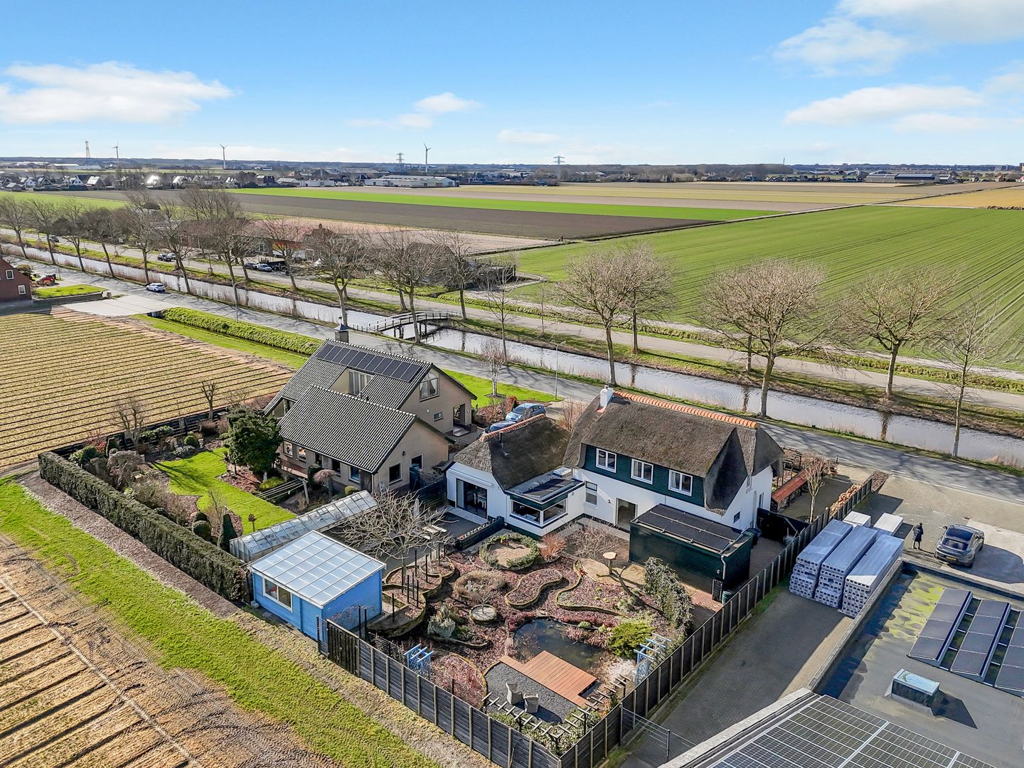 Welkom via de inpandige schuur/garage. De schuur/garage is voorzien van een bergzolder en heeft openslaande deuren, een eigen meteropstelling (9 groepen + 3 x aardlekschakelaar) en aansluiting voor een wasautomaat. Binnendoor is de keuken bereikbaar. In de riante woonkeuken, die een landelijke hoekopstelling heeft, vindt u volop inbouwapparatuur zoals een koelkast, vaatwasser, combi-magnetron, combi-stoomoven, inductiekoken, afzuigkap en dubbele spoelbak. De keuken is voorzien van vloertegels, lambrisering en een houtkachel. Door de harmonicadeuren die u naar buiten brengen, krijgt de keuken veel daglicht en een lichtkoepel geeft nog een extra schepje daglicht. Vanuit de woonkamer met haard heeft u schitterend vrij uitzicht over de Zandvaart, bloembollenvelden en de riante achtertuin. De woonkamer geeft toegang tot een kelderruimte. De hal met meterkast (13 groepen en 3 x aardlekschakelaar) is voorzien van lambrisering en een houten vloer. De eerste slaapkamer vindt u gelijkvloers en heeft een laminaatvloer. Aansluitend de eerste badkamer die betegeld is en is ingericht met een toilet, een ligbad en een inloopdouche. Een vaste trap brengt u naar de eerste verdieping. De bijkeuken heeft een aansluiting voor uw wasautomaat. Binnendoor is de berging bereikbaar (ca 3 x 6 m).