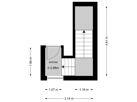 Ontvangsthal met toegang tot trappenhuis en lift.