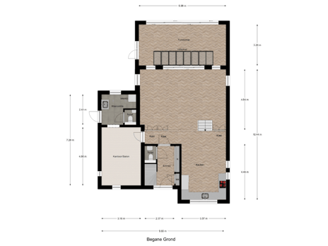 Uniek aan deze woning is de extra ruimte met eigen ingang en apart toilet. Momenteel in gebruik als kapsalon, maar ook perfect als andere praktijkruimte, kantoor of chillroom voor de kinderen. De fiscale voordelen maakt deze ruimte extra interessant voor ondernemers. Achter deze ruimte bevindt zich nog een praktische wasruimte met een keukenblok en aansluiting voor wasmachine en wasdroger.
