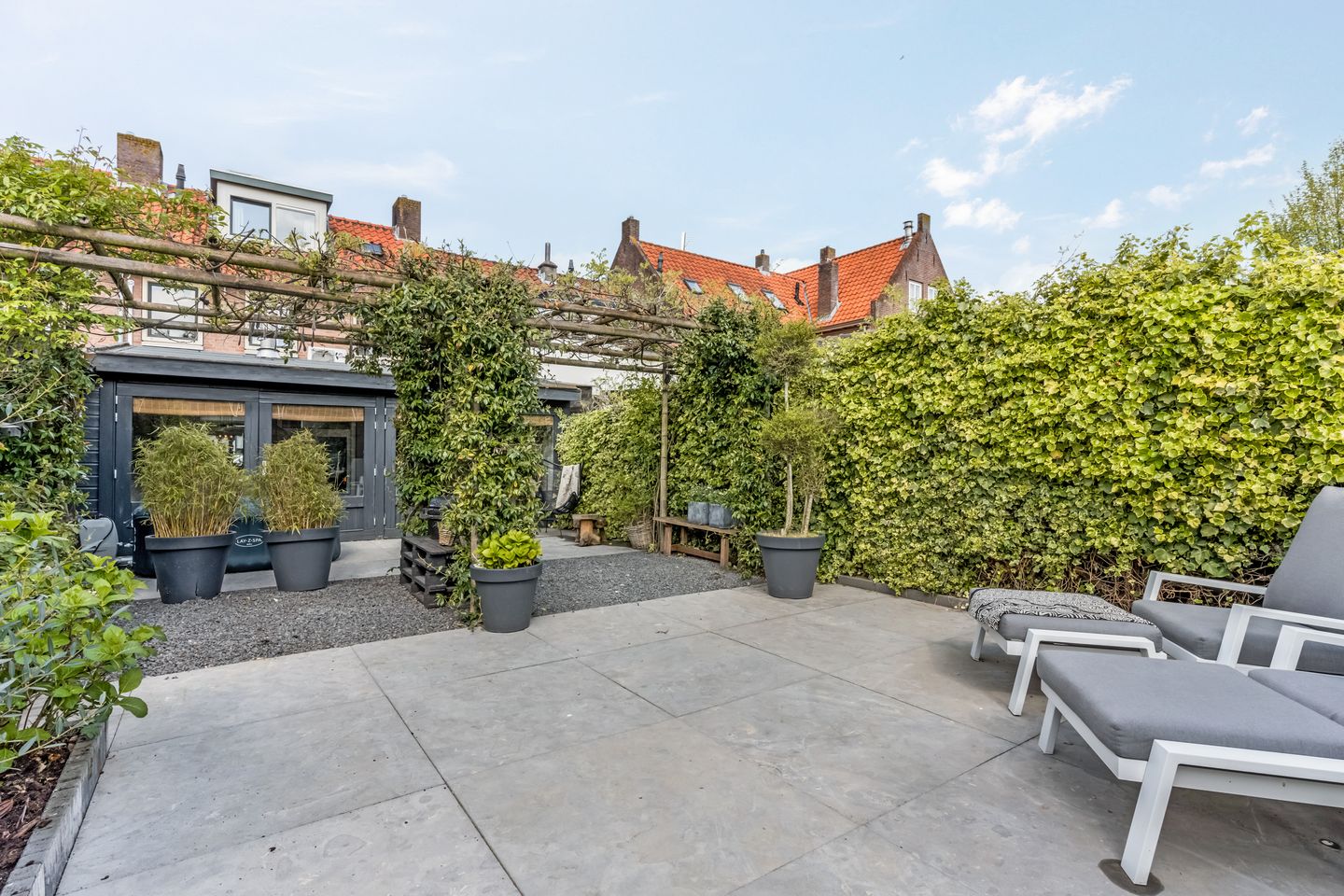 De achtertuin is een oase van rust en privacy, fraai aangelegd en gelegen op het zuidoosten. Hier geniet u van de zon, groen en verschillende zitplekken die uitnodigen tot ontspannen. De prachtige tuinkamer met houtkachel vormt een verlengstuk van de woning, een sfeervolle plek waar u het hele jaar door kunt verblijven. In de winter knus bij het vuur, in de zomer open naar de tuin: buitenleven op zijn best.
