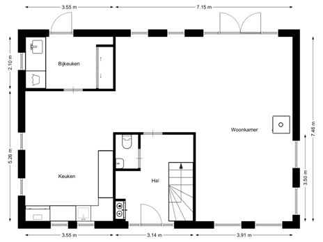 De woonkamer is L-vormig en tuingericht waardoor je dagelijks geniet van het mooie uitzicht aan de achterzijde. De dubbele deuren zorgen voor een goede verbinding met buiten. De woonkamer is smaakvol afgewerkt met een sfeervolle houten topvloer en de houtkachel zorgt naast warmte ook voor extra sfeer. Door de vele raampartijen rondom is het geheel zeer licht en ruimtelijk.