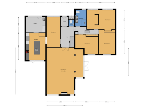 - 176 m² (16.00 metre deep and 11.00 metre wide)
