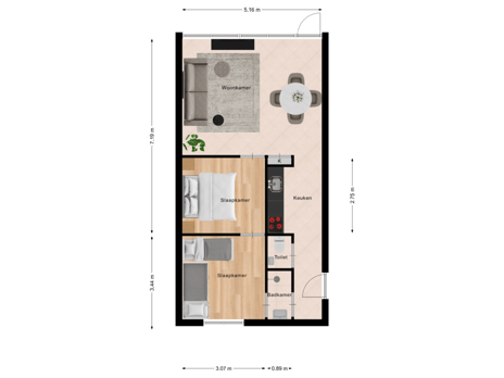 - Twee slaapkamers (waarvan één doorloop)