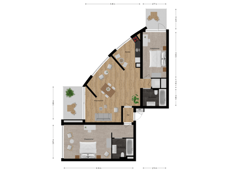 • Twee stijlvolle badkamers en twee comfortabele slaapkamers