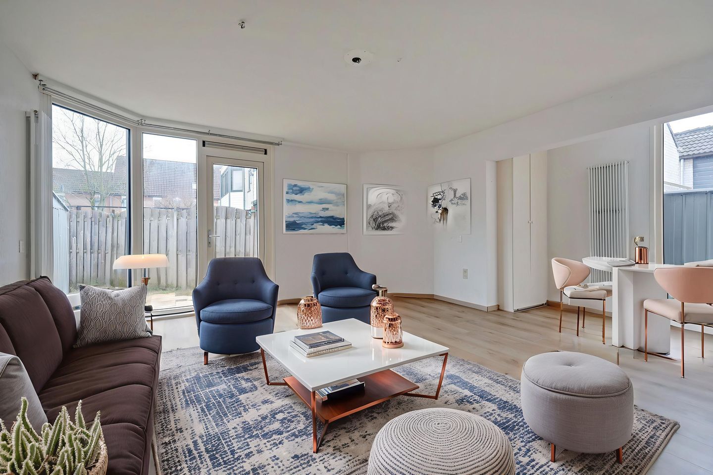 Via de woonkamer is er directe toegang tot de achtertuin, gelegen op het zuiden. Dankzij deze gunstige ligging kan hier optimaal van de zon worden genoten en ontstaat er een prettige verbinding tussen binnen en buiten.