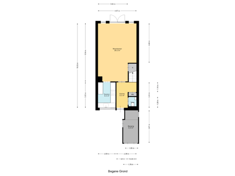 - 55 m² (10.00 metre deep and 5.50 metre wide)