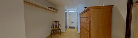 - Double sink, walk-in shower, 2 toilets, underfloor heating, shower, and sink