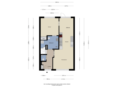 De woning is gemeten op basis van de Branche Brede Meetinstructie (BBMI). Deze meetinstructie is bedoeld om een meer eenduidige manier van meten toe te passen voor het geven van een indicatie van de gebruiksoppervlakte. De meetinstructie sluit verschillen in meetuitkomsten niet volledig uit, door bijvoorbeeld interpretatieverschillen, afrondingen of beperkingen bij het uitvoeren van de meting.