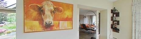 De woonkamer sluit direct aan op de serre, die later is aangebouwd. Dankzij de grote raampartijen is dit een heerlijke plek om in elk seizoen te genieten van de omgeving – van de eerste voorjaarszon tot lange zomeravonden of juist knusse winterdagen.